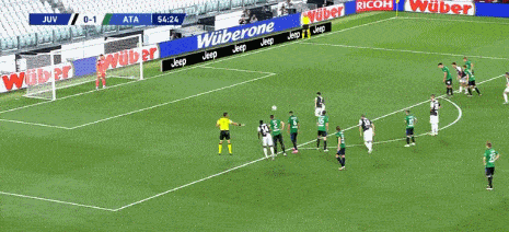 比赛开始后,双方互有进攻,但整体上来说客队更加主动。比赛第16分钟,戈麦斯送妙传,萨帕塔低射破门,亚特兰大率先取得领先。并且将比分优势带到了中场休息。下半场,开场第10分钟迪巴拉传中遭对手手球,裁判果断判罚点球,C罗主罚一蹴而就扳平比分。