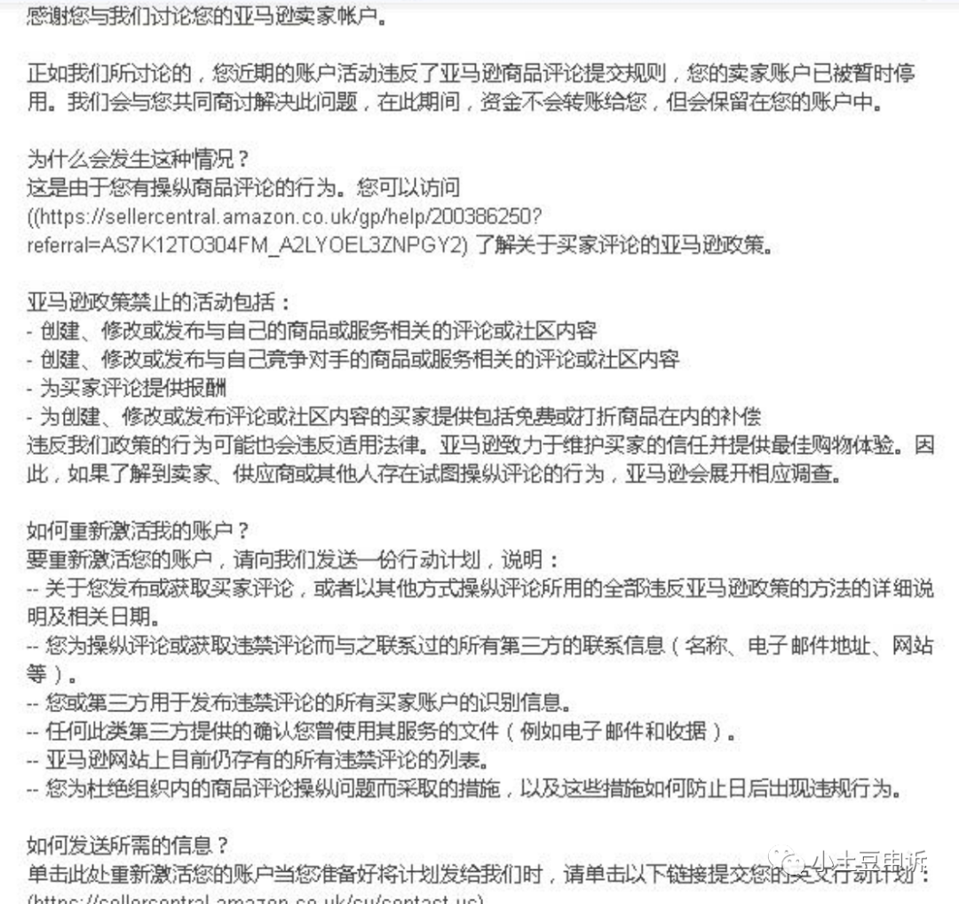 前段时间因为操纵评论问题一大波卖家账号被封。小土豆刚开始几天发现苗头不对,简单的写了篇文章,提醒那段时间刷单检测较为严格。后面有卖家跟小土豆反馈说看到文章后赶紧暂停了测评。也有卖家跟小土豆大吐苦水,刷了一两单就被封了。测评刷单对卖家多么重要其实从铺天盖地的测评广告就能窥一斑而知全貌。趁这段时间事态稍缓和了,我们来好好聊聊关于亚马逊操纵评论被封的那些事儿。首先我们先贴封操纵评论关店邮件