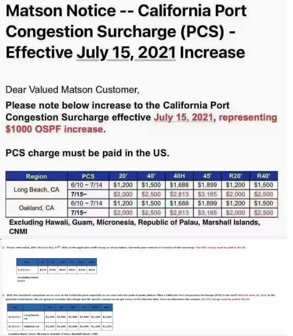 神原汽船的公告称,受到情影响,船公司运营成本上升,神原汽船将自2021年7月1日起将上调宁波出口至日本偏港的所有预付海运费,上调幅度:$100/20GP;$200/40GP&HC(其他附加费费率不变)。