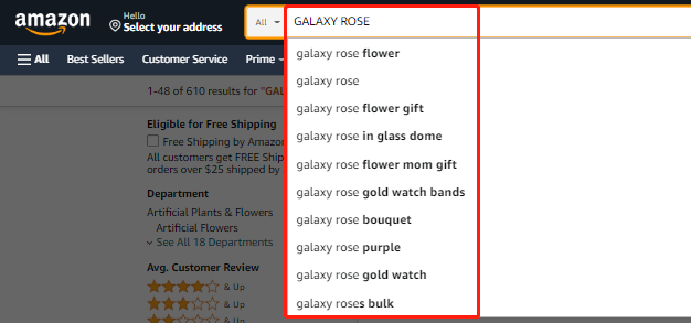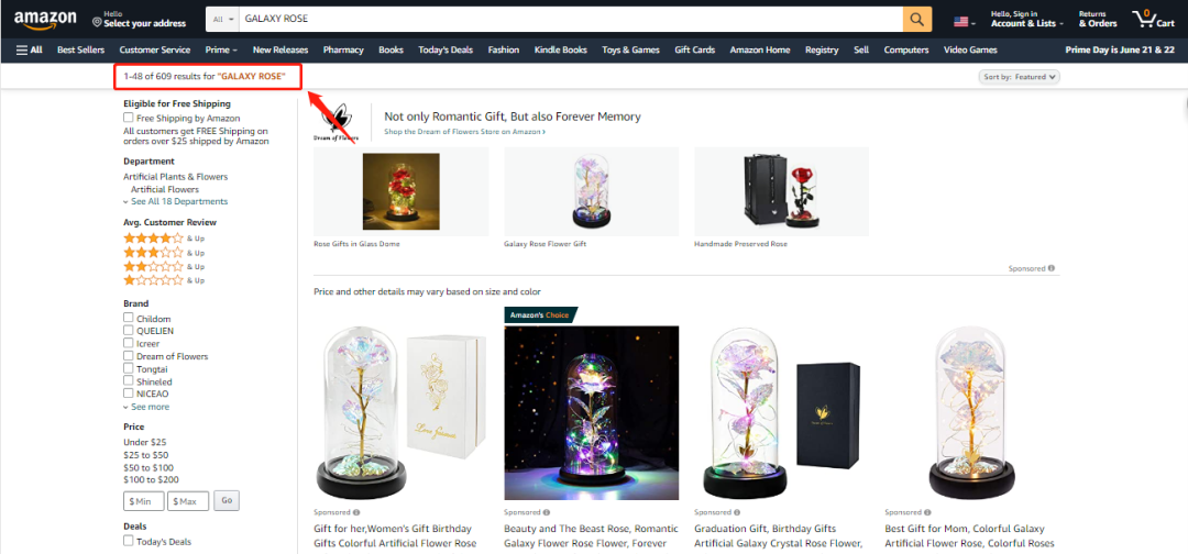 在亚马逊上输入GALAXY ROSE,搜索结果多达609条: