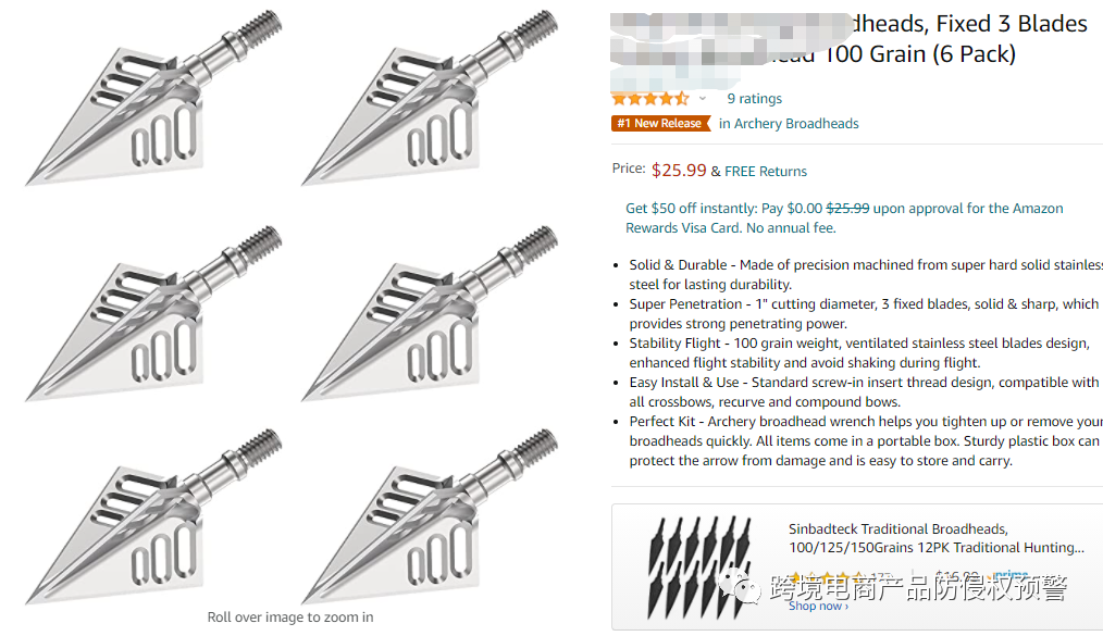 不过,要上架这款【箭头】的上架,需要知道一个事实,就是,这款产品,在美国市场,已经有美国外观专利了,后面上架这款产品,我担心有专利侵权风险。下面展示其专利图截图: